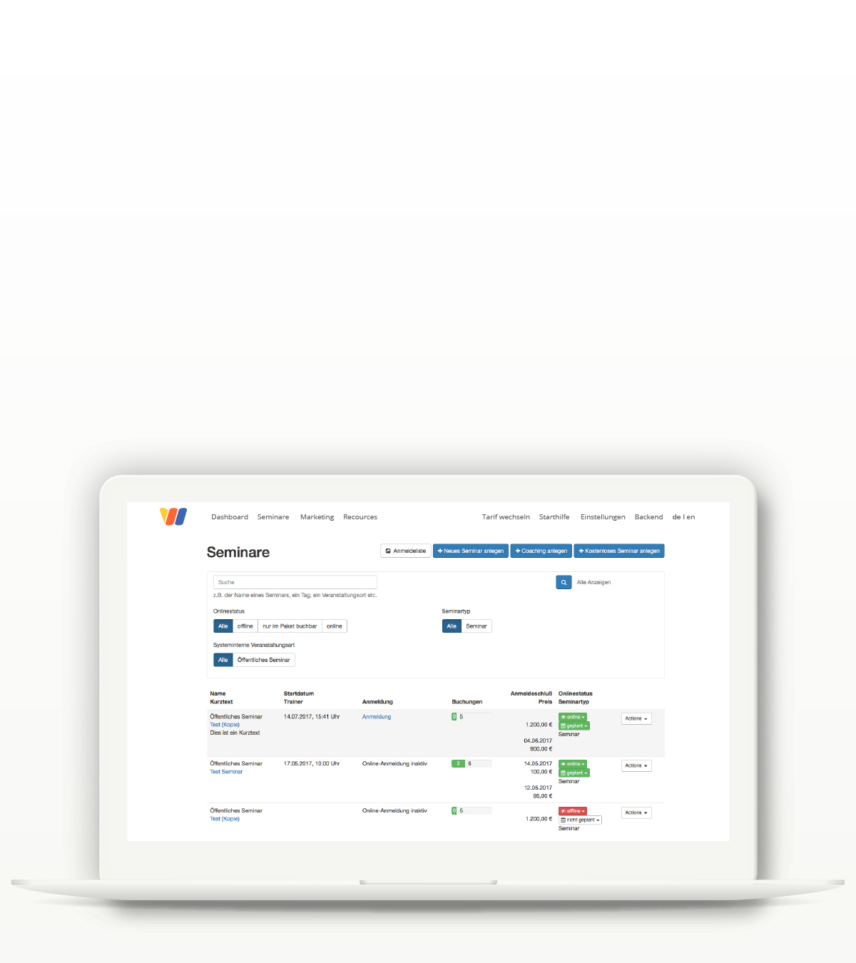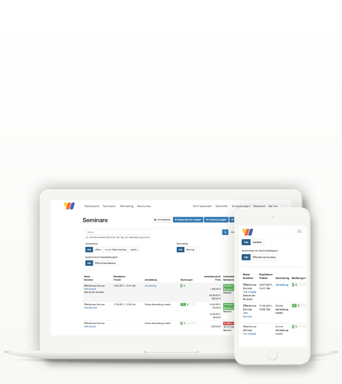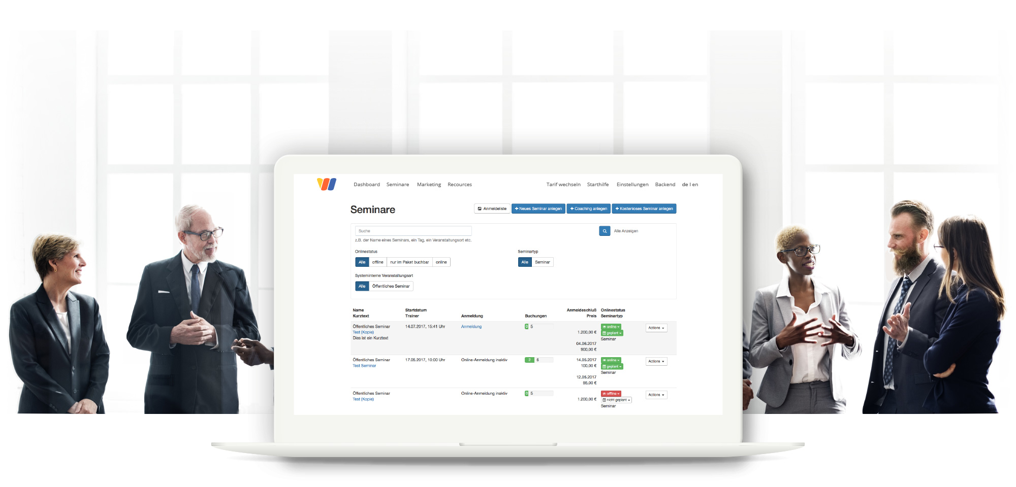 Wundercoach bietet geniale Funktionen, die Ihnen Ihre Arbeit erleichtern. Von der einfachen Einbindung in Ihre Website bis hin zu Abrechnung, Trainermanagement und Raumplanung.